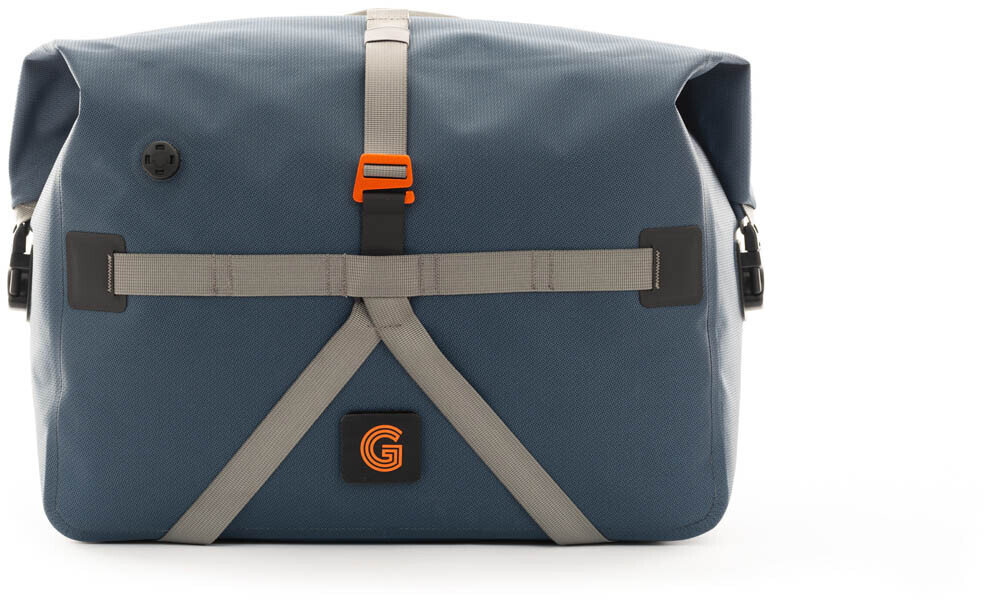 The largest Brompton roll-top bag. Packs in 23 litres of space for big cargo days and overnight stays. Fits on the front of your Brompton with one quick click - so you can pack it all and pedal with ease.